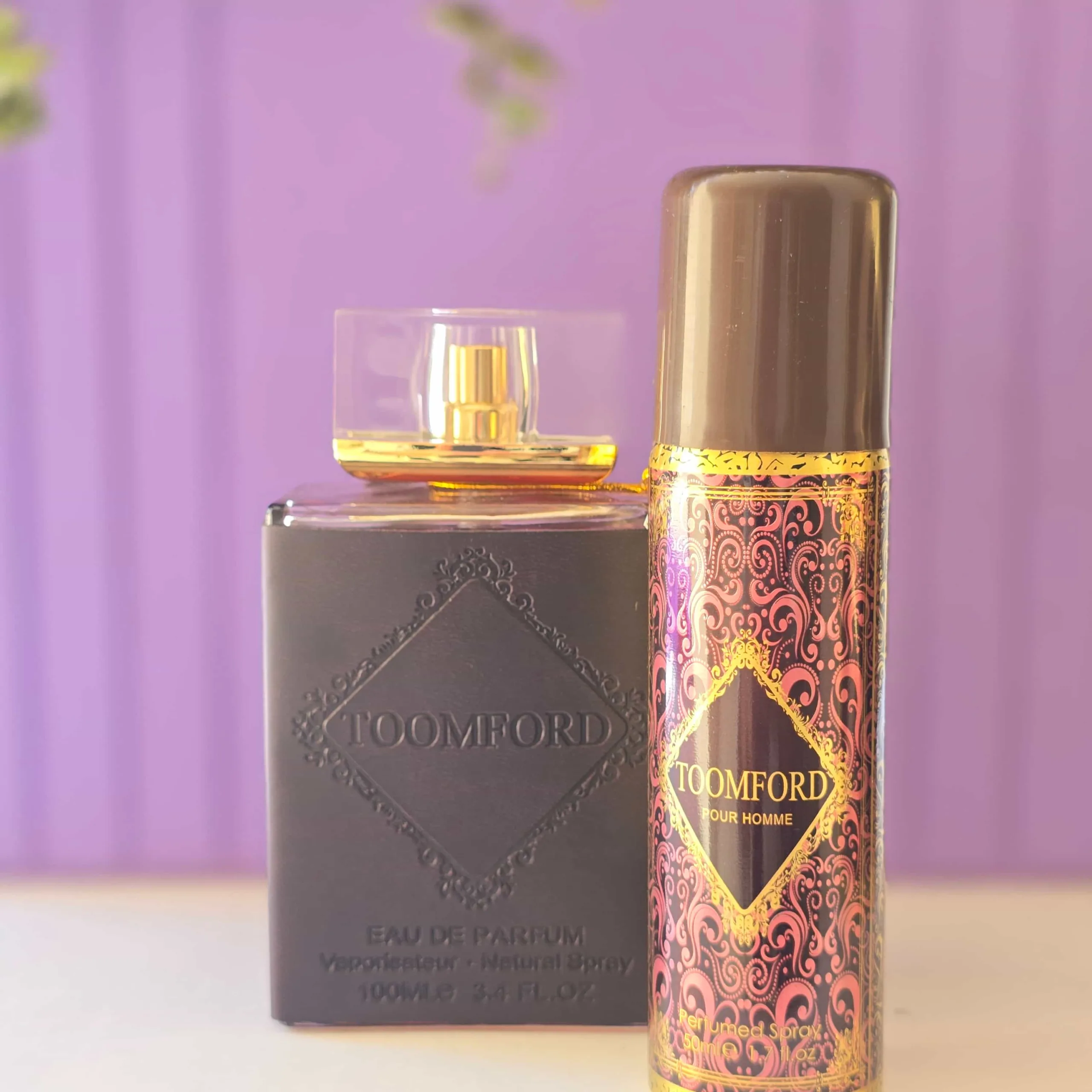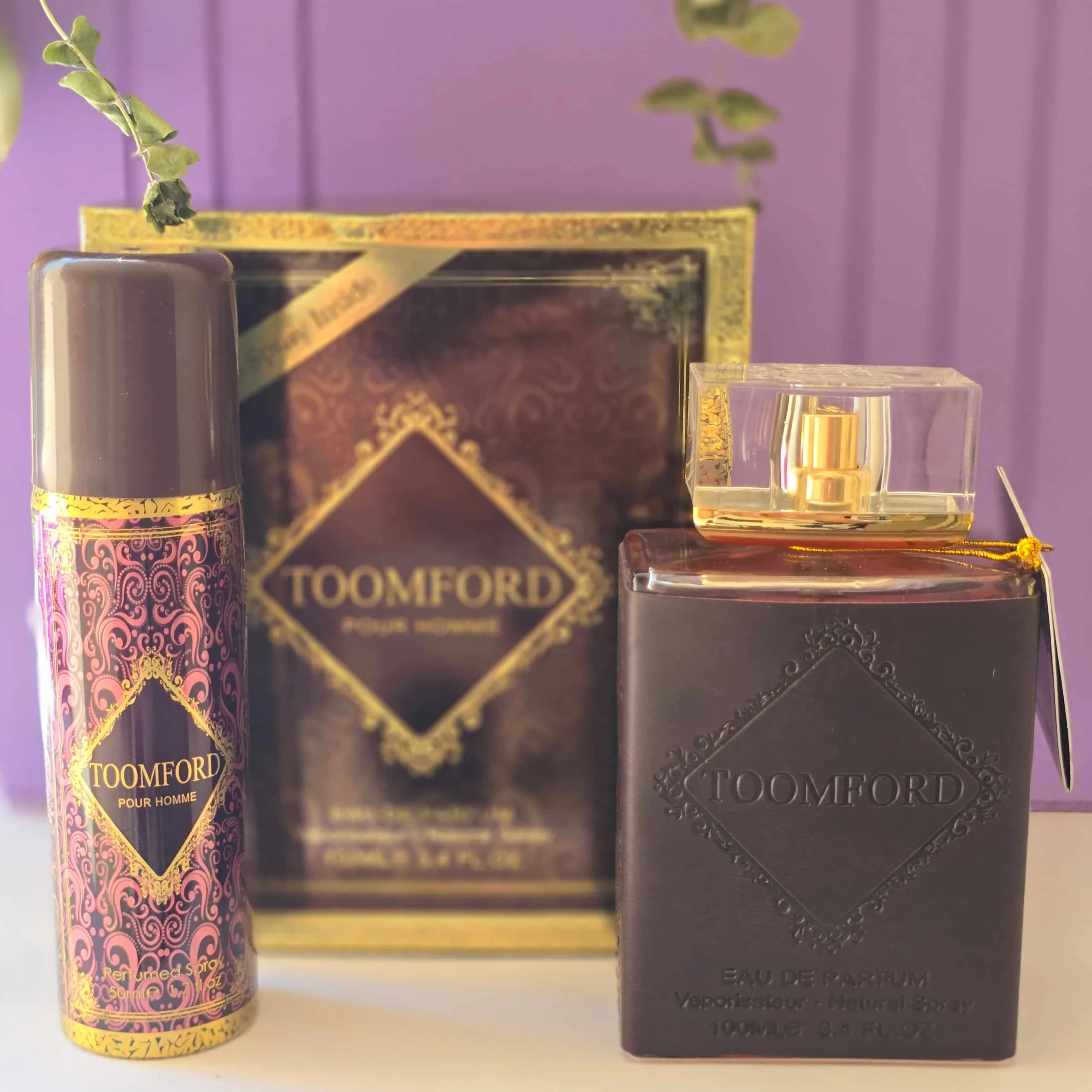 طراحی و بسته بندی عطر ادکلن مردانه تامفورد روکش چرمی پورهوم با اسپری