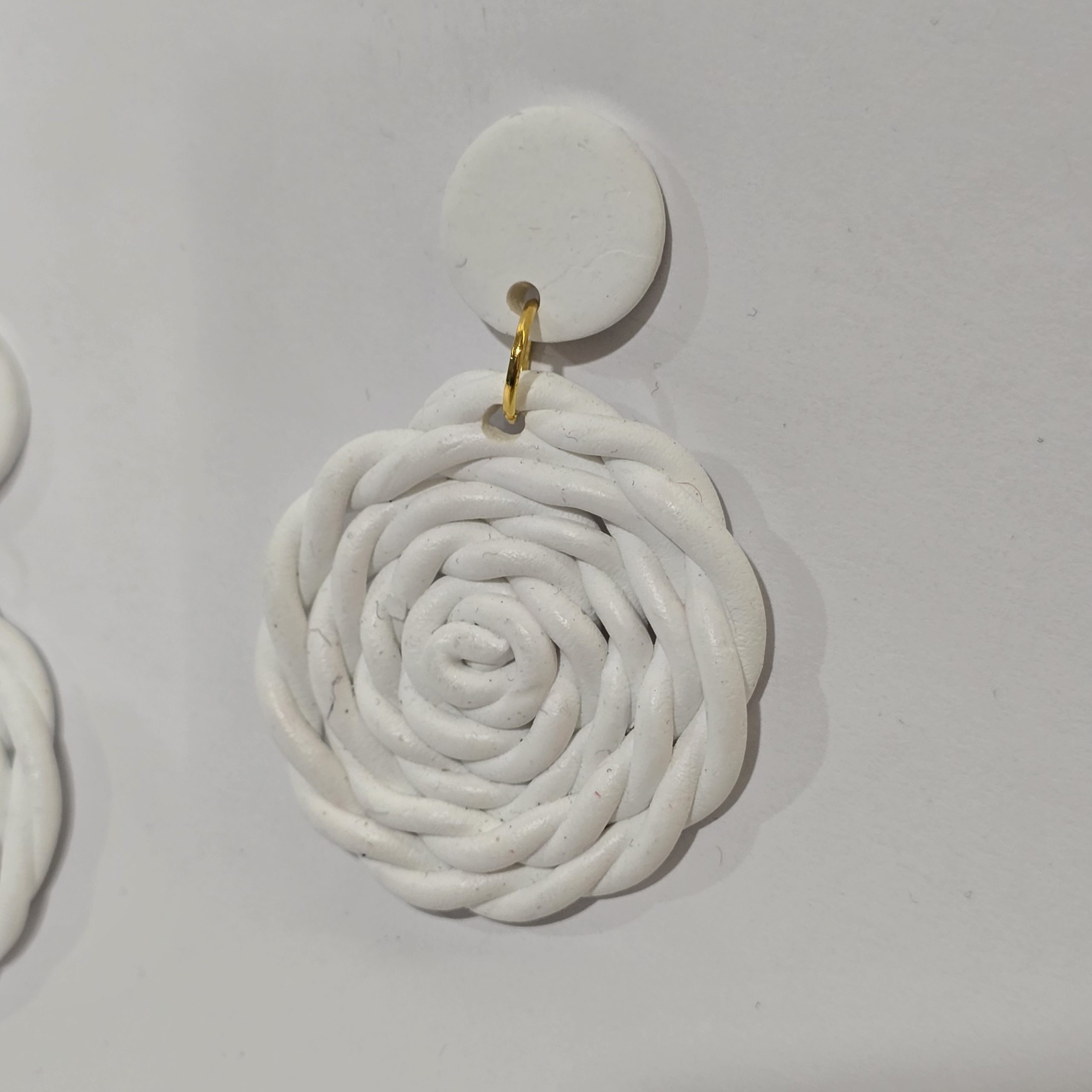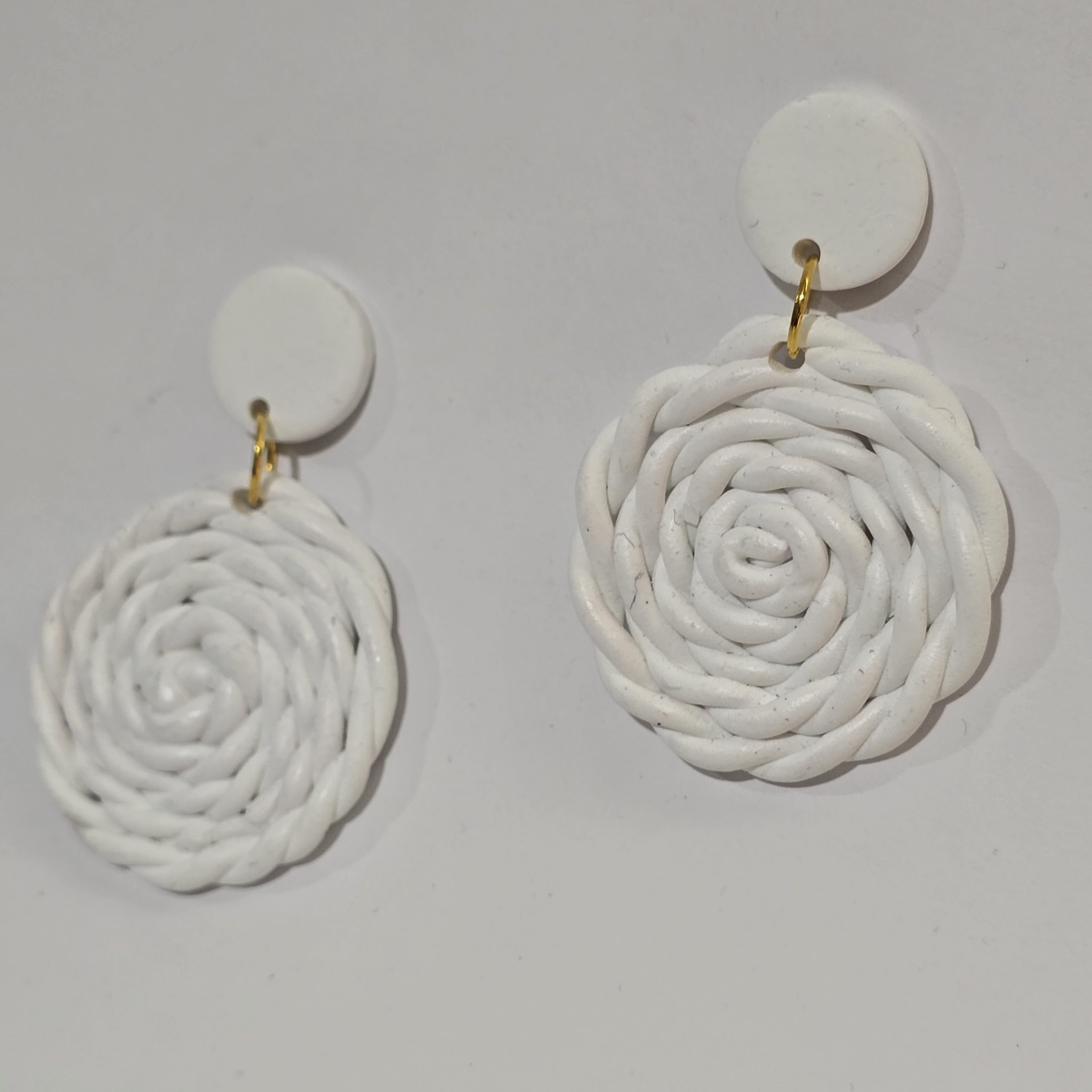 گوشواره پلیمری طرح گیس باف سفید